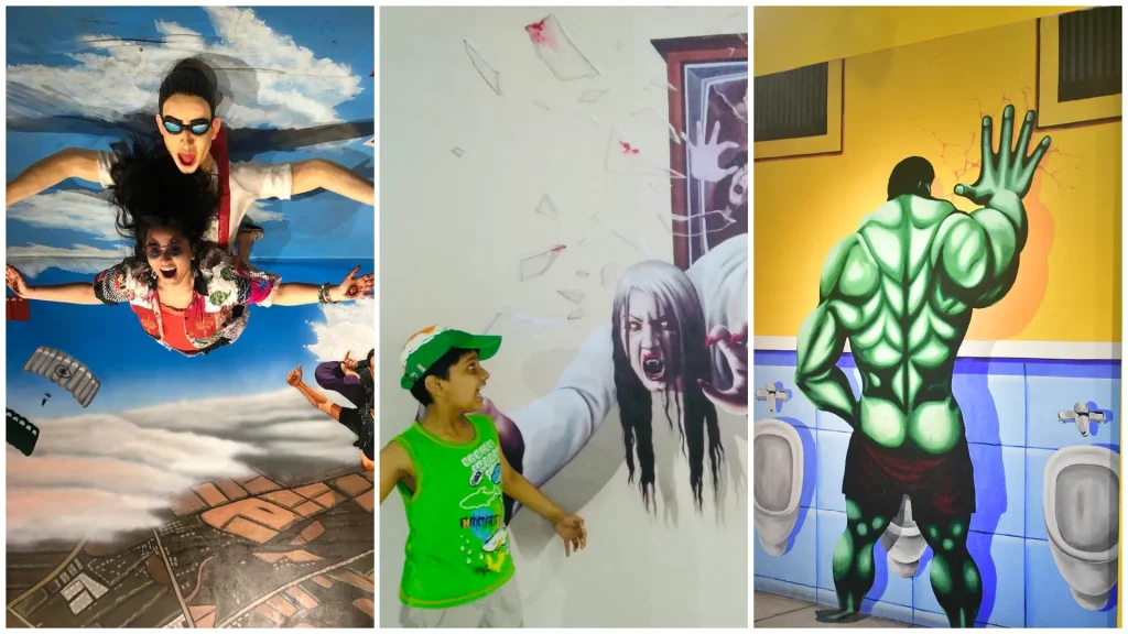 Pose as if you’re hanging off a skyscraper, riding a giant dolphin, or balancing over lava  –  every illusion is designed for both fun and photos. It’s one of the most photogenic attractions in Bangalore for kids and parents alike.