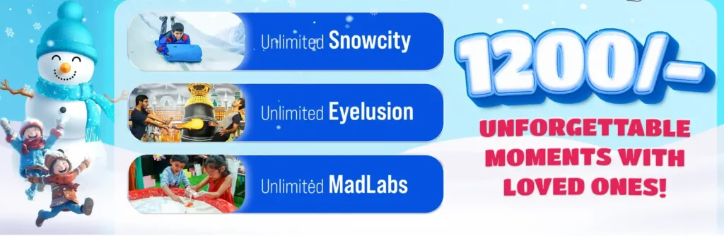 • Mid-range (₹500–1000): Snow City weekday packages, MAD Labs.